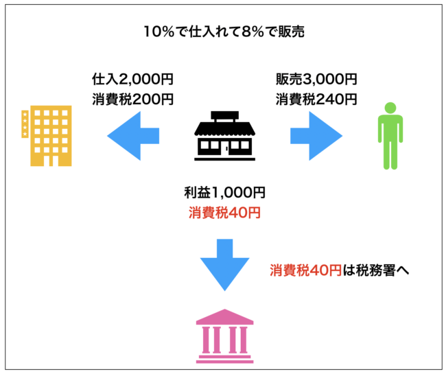 利益は同じですが、税務署へ支払う消費税が半分となっています。
